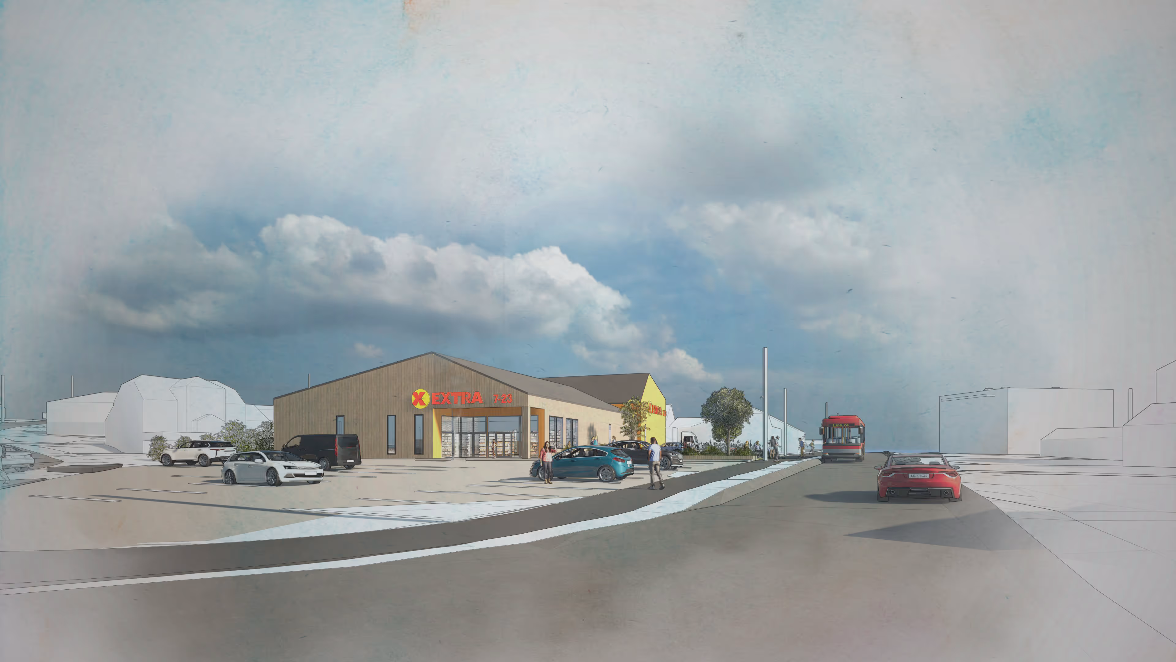 Som del av reguleringsplanarbeidet er det utarbeidet et illustrasjonsprosjekt som viserhvordan framtidig dagligvarebutikk kan bli.
