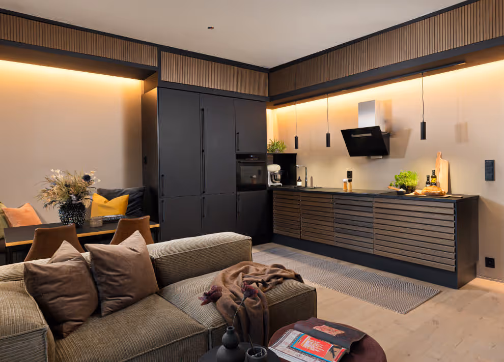Leiligheten i Telefongaarden i Fredrikstad er totalrenovert med gjennomtenkte løsninger i alle rom.