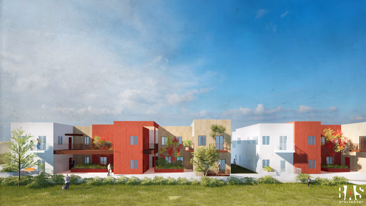 Ved å bruke ulike farger og materialer, samt synliggjøre inngangsdørene til leilighetene, har vi skapt en følelse av individualitet og tilhørighet for hver beboer. Fargene gir et friskt pust til bebyggelsen og tilfører personlighet til hver leilighet.